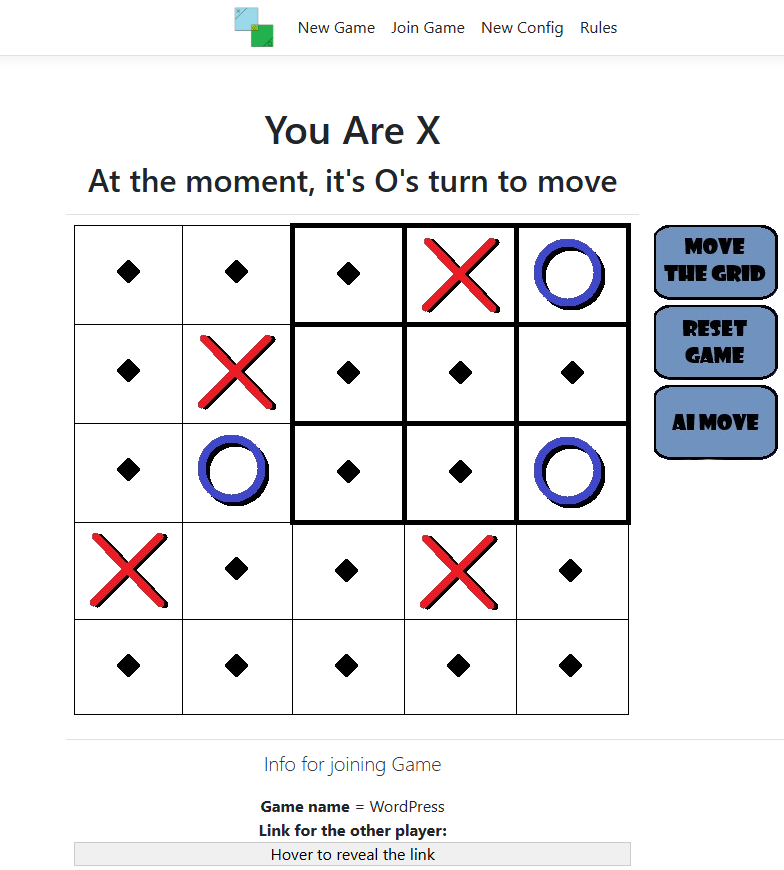 In Tic-Tac-Two, the game board consists of a 5×5 outer grid and a movable 3×3 inner grid. Players take turns making strategic moves, which can be one of the following: